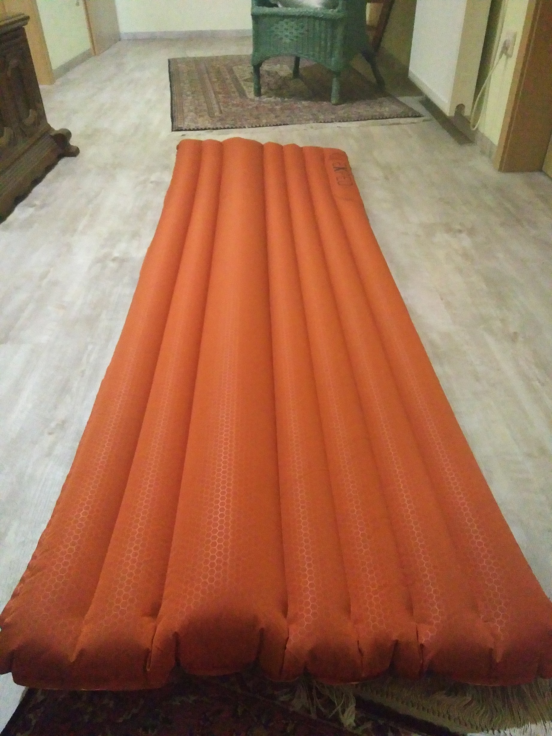 Hier hat sich leider die Verklebung einer der Kammern gelöst und damit ergibt sich jetzt eine hässliche Auskehlung an der Stelle. Leider hört man immer wieder von diesem Problem auch von anderen Blogs. Daher würde ich die Matte nicht empfehlen. Nachdem ich Expad nochmal angeschrieben und auf den Defekt hingewiesen habe, hat Exped mir zugesichert eine neue Matte zuzusenden. Für die Standard-Matten bietet Exped 5 Jahre Garantie, welche sie auch einhalten und sehr schnell bearbeiten!